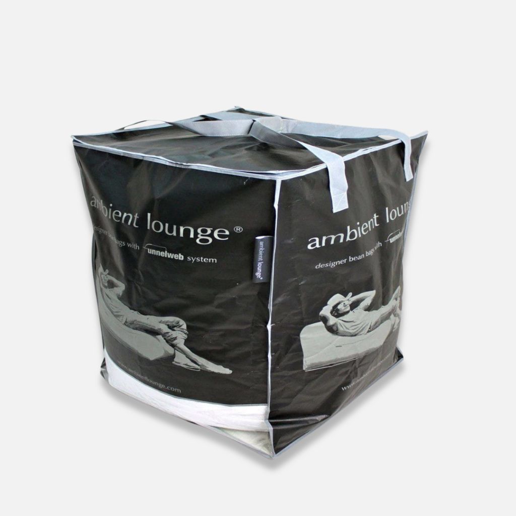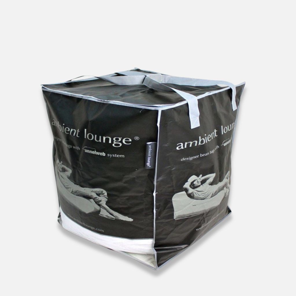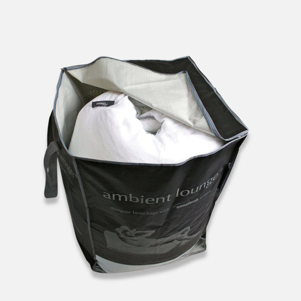 Þú þarft ekki lengur að bera þungar pokar um verslunarmiðstöðvar, hella baunapúðabaunum um allt fallega heimilið þitt, brjóta plastpoka og fá helming fjölskyldunnar til að hjálpa þér að fylla eða fylla upp baunapúða. Ambient Lounge baunapúðafylling kemur í einkaleyfisvarinni Funnelweb ™ Zip & Tips kerfi, afhent í umhverfisvænum endurnýtanlegum flutningspoka beint að dyrunum þínum. Það er eins manns verk sem er fljótlegt, þægilegt og einfalt.