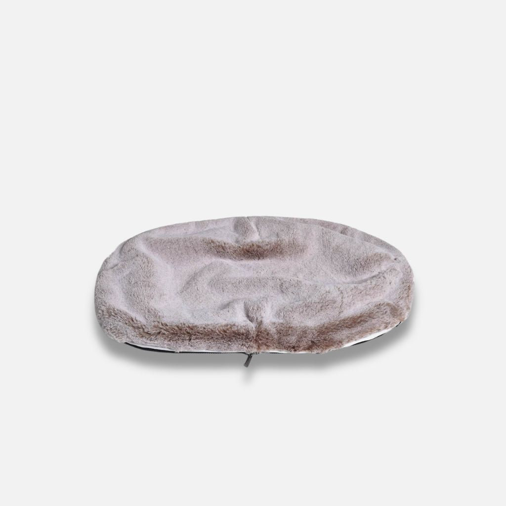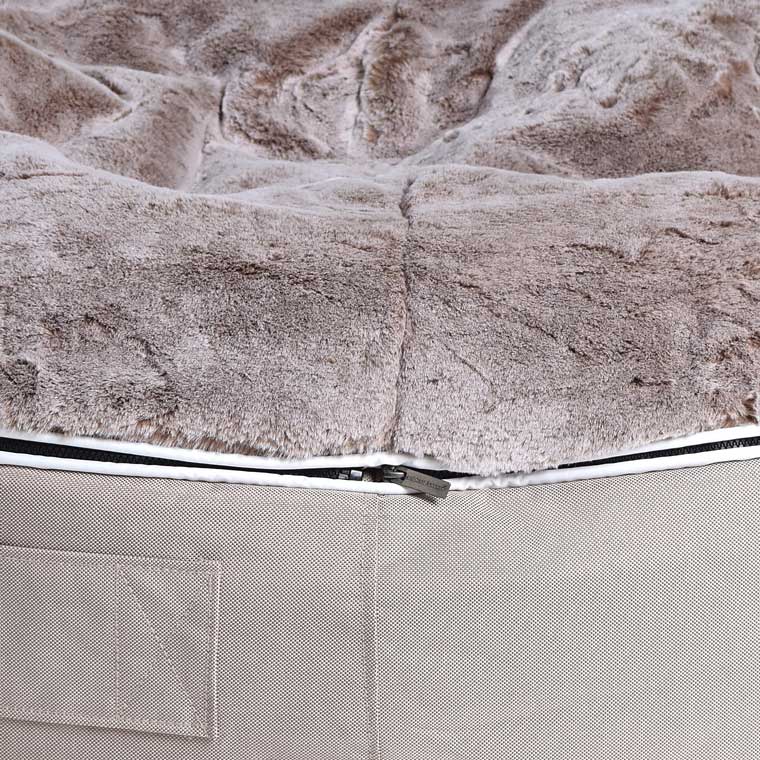 Beige liturinn nefndur eftir hinum þekktu kaffidrykk cappuccino er þægilegur fyrir augun og auðvelt er að samræma hann við aðra liti. Efnið er ofið sem gefur fallegt litbrigði. Liturinn á yfirbreiðslunni í falsfeldi passar fullkomlega við grunninn. Toppurinn má auðveldlega fjarlægja úr hundasænginni þökk sé rennilásnum, svo sængin passar jafn vel innandyra sem utandyra.