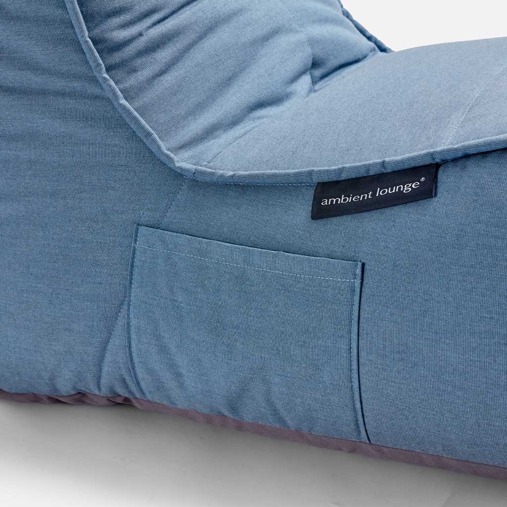 Búið til með glæsilegu tveggja lita bláa UV Grade AA+ efni frá Ambient Lounge, þú getur örugglega látið þennan stól standa úti. Efnið er nógu mjúkt til að nota innandyra og þolir alls konar veðurskilyrði utandyra. Atlantic Denim passar vel við TitaniumWeave eða Silverline og hefur fallegan, kaldan bláan litapallettu sem passar bæði við hönnunarinnréttingar og útivistarsvæði. Efnið er gert úr endingargóðu og slitsterku, en samt mjúku útiefni, sem hefur marglaga fagurfræðileg gæði og framúrskarandi áþreifanleika. Það hentar fyrir margvísleg notkunarsvæði, allt frá viðskiptahönnunarverkefnum, hótelum, stofum og barnaherbergjum.