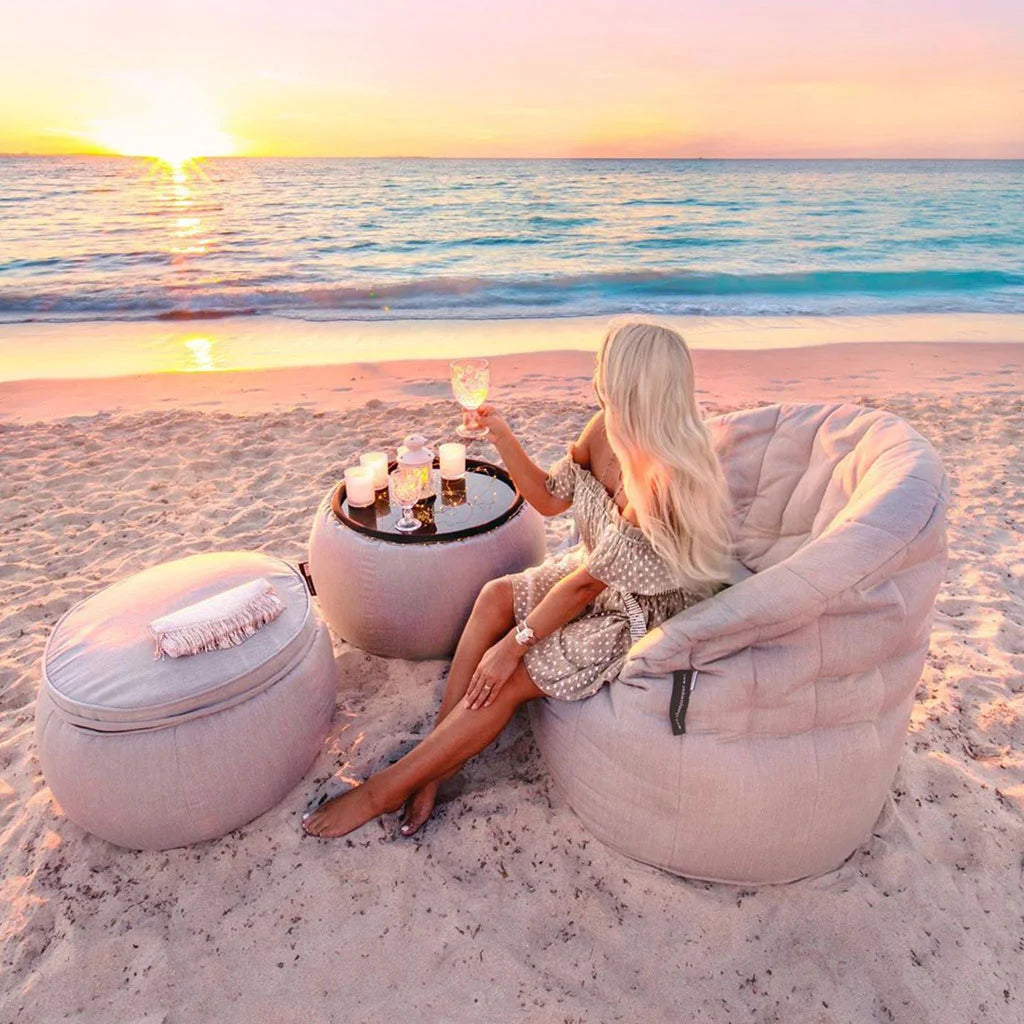 Hvort sem þú hefur húsgögnin úti á svölunum eða inni í stofunni, þá er Butterfly setpoki gerður úr framúrskarandi efni sem er bæði endingargott og mjög mjúkt. Það þolir allt frá stormi til fjörugra athafna barnanna, á sama tíma og mjúku húsgögnin freista allra til að fá sér blund.
