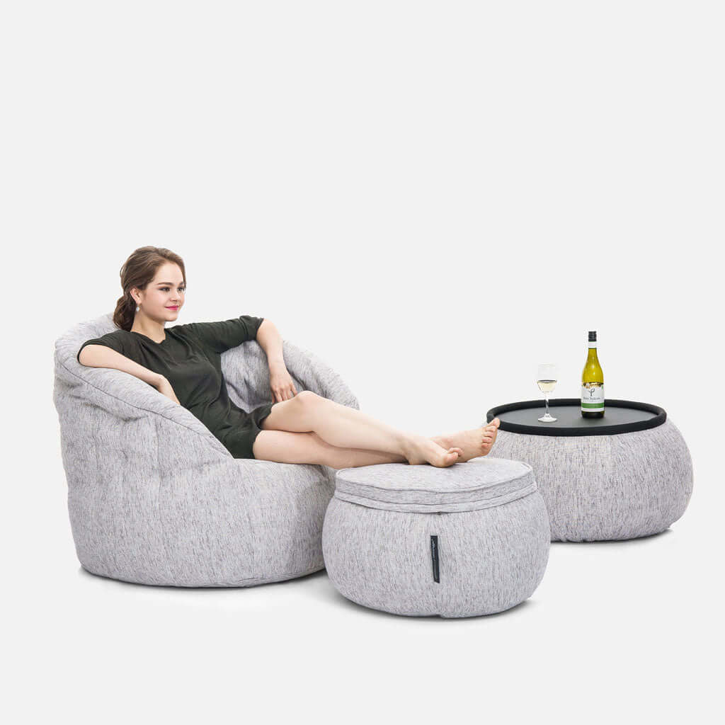 Contempo pakki er fullkomna hönnunarsettið. Þetta sett inniheldur Butterfly sófa, Wing Ottoman, og Versa borð. Þannig hefurðu aðgang að mjög þægilegum stól, dásamlegum fótskemli, og ekki síst mjög praktísku borði. Þetta er fullkomin viðbót við þægindasvæðið þitt í íbúð!
