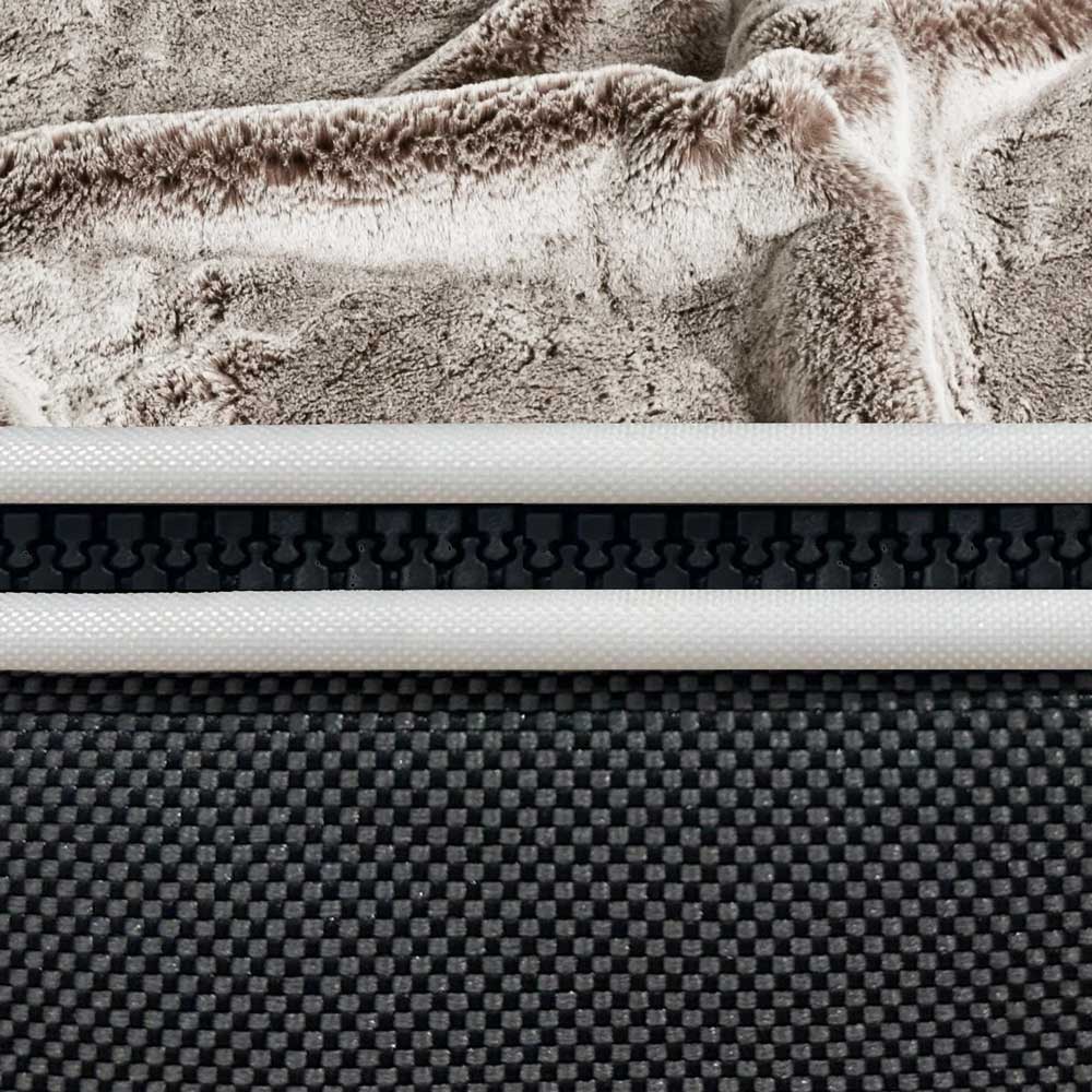 Beigi liturinn nefndur eftir hinni frægu kaffidrykk cappuccino er þægilegur fyrir augun og er auðvelt að samræma við aðra liti. Efnið er ofið sem gefur fallegan litablæ. Liturinn á áklæðinu í falska feldnum passar fullkomlega við grunninn. Áklæðið má auðveldlega fjarlægja af hundarúminu þökk sé rennilásnum, svo rúmið passar jafn vel inni sem úti.