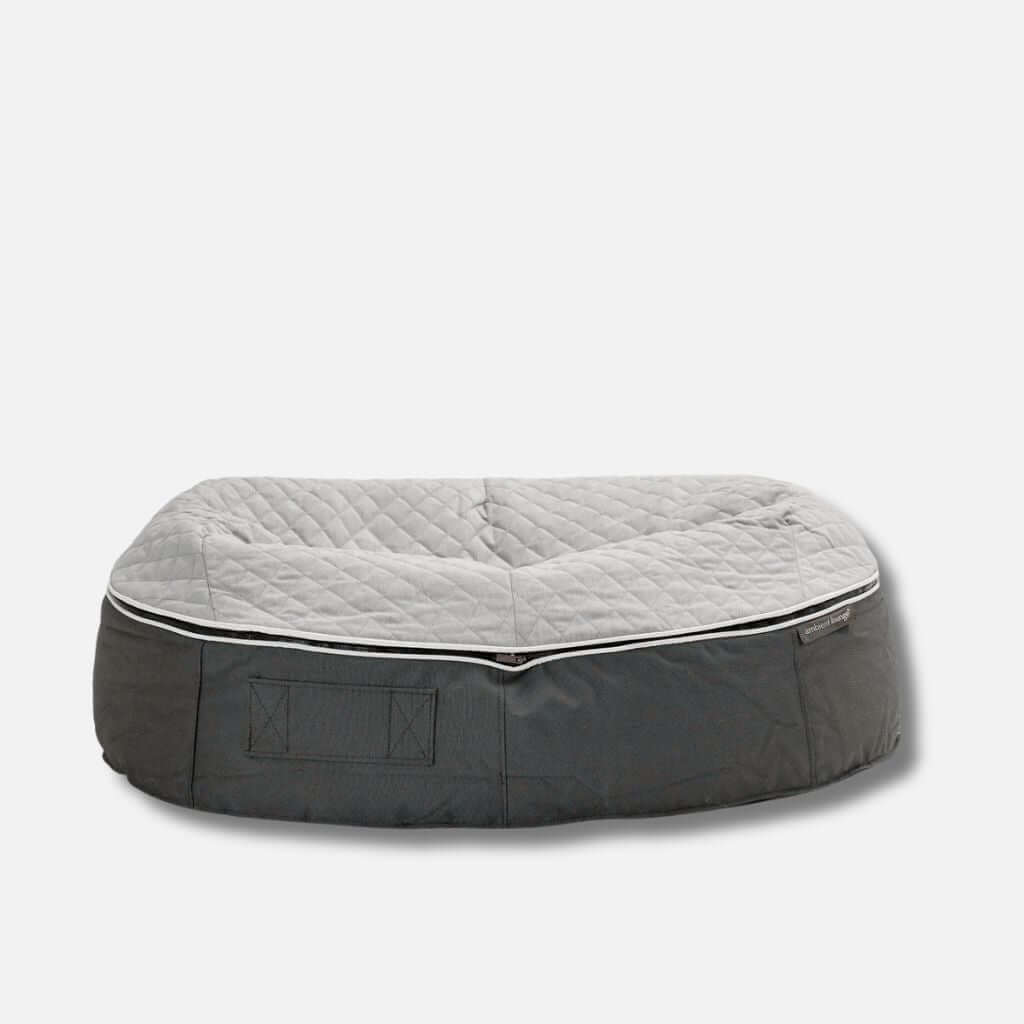 Að lokum er það hér! Ambient Lounge® hundarúmið þeirra er nú til í hitastýrðri vatnsheldri útgáfu með bólstrað yfirborð fyrir hunda sem stundum kjósa að sofa kaldara. Fjarlæga ThermoQuilt-hlífin er ótrúlega fjölhæf og hægt er að nota hana bæði á gólfinu eða taka hana með út sem ferðamottu. Þú getur líka sett Thermo Cool kælimottu undir púðann í sérstakum vasa fyrir auka kælingu. Grunnurinn er hinn frægi tyggjavörn og mjög endingargott inni-/úti hundarúm frá Ambient Lounge, svo þú færð vatnsheldan útibag sem er auðvelt að þrífa og þolir tyggingu.