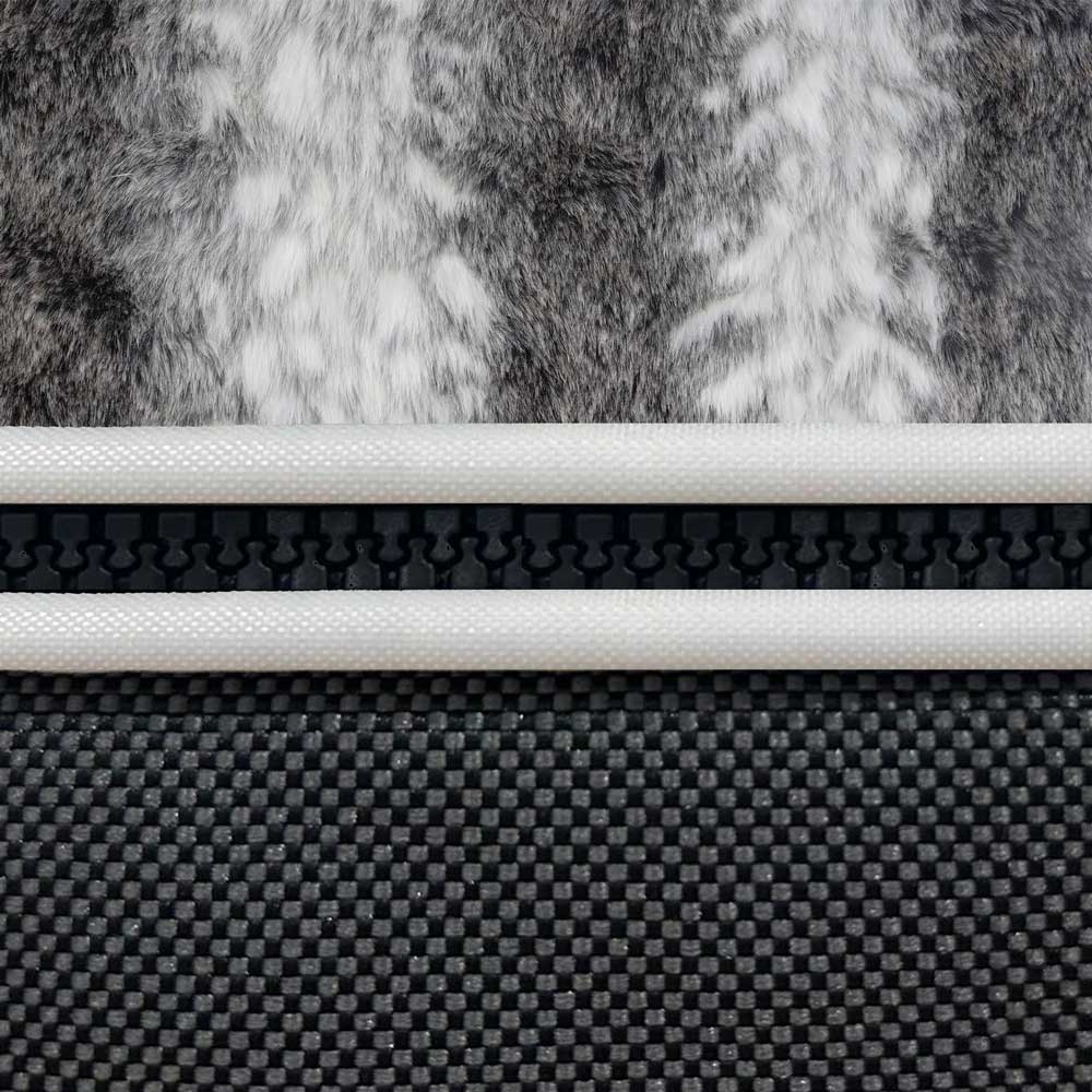Liturinn Wild Animal hefur frábæra gervifeldshlíf í blöndu af gráum og hvítum. Efnið hefur fallega skyggingu sem gerir dökka litinn ekki of harðan. Fjarlæganleg hlíf með mynstri sem minnir á feld villts dýrs. Hlífin er hlý og góð, sem passar fullkomlega á köldum vetrar Dagar. Gervifeldurinn gefur rúminu einstakt útlit og passar fullkomlega saman við báðar grunninn.
