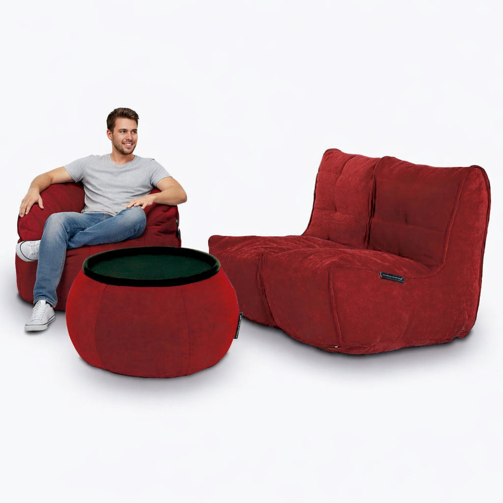 Maison Package er meira en sett af baunapokum. Þetta er setustofa sem mun endurskilgreina alla stemningu í stofunni þinni, hvíldarherberginu í vinnunni, eða annars staðar. Þú getur hallað þér aftur í þessum þægilegu stólum, og ekki síst nýtt þér frábæra borðið, fyrir aðeins betri húsgagna upplifun en þung, óþægileg, og ekki síst dýr húsgögn sem annars eru á markaðnum!