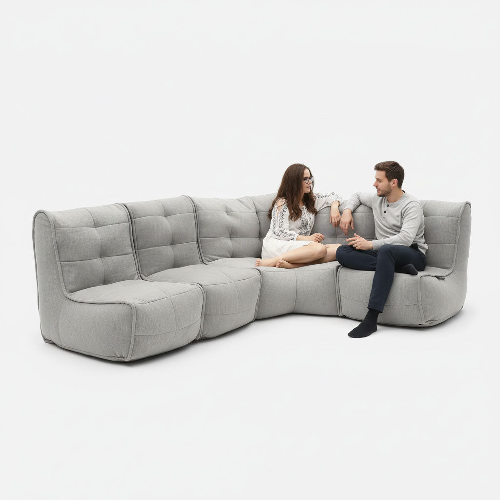Rými fyrir endurnýjun á lofti, kjallara vinnustofur, stór svefnherbergi, tónlistar- eða skemmtirými og þétt setustofur eru fullkomin fyrir L Sófa. Hann er einnig ofurléttur, svo það er auðvelt að bera hann upp háar tröppur og þrýsta í gegnum minni göt fyrir þá sem eiga erfitt með aðgengi. Bættu við samsvarandi Twin Ottoman- eða Versa-borð fyrir aukna sveigjanleika og lúxus.