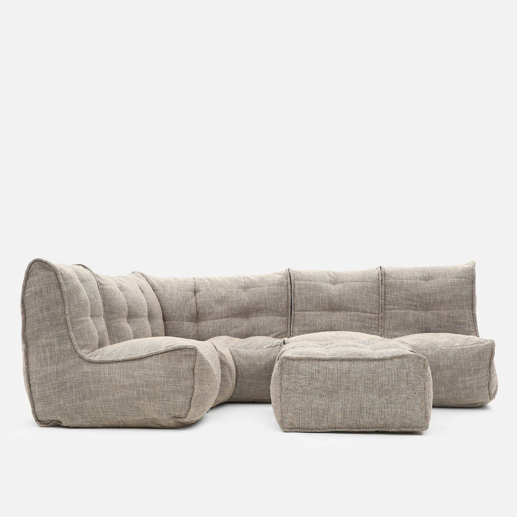 Mod 5 Living Lounge er einingin sem næstum uppfyllir allar kröfur. Með einingunni færðu 1 Twin Couch, 1 Modular Corner, 1 Modular Link Single, og 1 Twin Ottoman. Fjöldi sæta er fullkominn fyrir þá sem eiga stóra fjölskyldu eða elska að hafa gesti yfir!