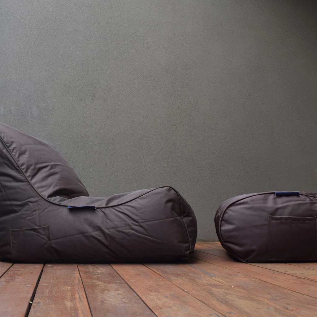 Þetta er sessupoki hannaður fyrir bæði innandyra og utandyra notkun. Það þýðir að efnið er hannað til að þola veður og vind, sem og að vera þægilegt að sitja á.