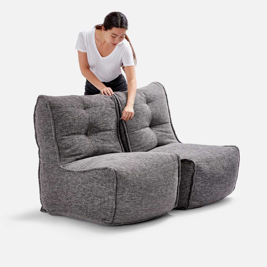Eins og þú munt sjá, þá er Twin Couch í raun tvö stök sæti sem eru tengd saman, sem gerir húsgagnið nothæft að því marki að þú getur auðveldlega aðskilið og flutt það. Hvert af þessum tveimur stökum sætum hefur tvö hólf sem gera það að verkum að fyllingin fer ekki beint niður á botn eins og oft gerist í öðrum vörum. Innan í teygir sérstakt teygjuband áklæðið á þann hátt að húsgagnið fær það fallega útlit sem er svo eftirsóknarvert. Það er mikilvægt að fylla bakhlutann næstum að brún fyrir góða stuðning og útlit, á meðan að framan snýst um þægindastig þitt, þar sem flestir kjósa að láta sætissvæðið vera nokkuð slakt, þar sem sætið aðlagar sig þannig að líkama þínum.