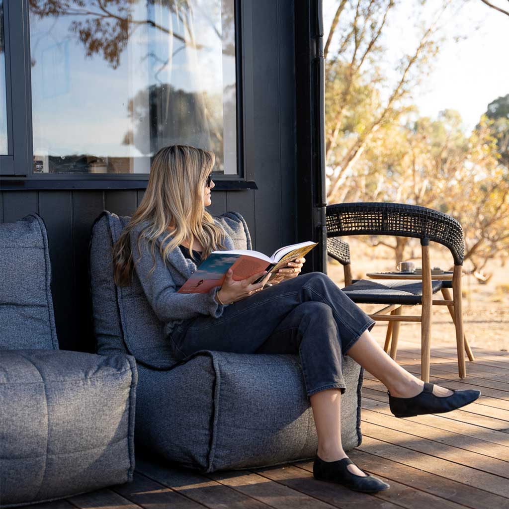 Titanium Weave Twin Couch frá ambient lounge® má skipta í tvö frábær stök sæti ef þú þarft að aðskilja þau fyrir auka gesti.