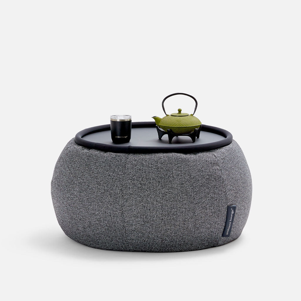 Settu borðplötuna þína á Versa Table. Haltu henni lauslega á sínum stað með teygjanlegu rörunum. Hún ætti að sitja vel á sínum stað, en ekki of þétt, svo það sé auðvelt að fjarlægja hana þegar þú vilt nota þetta fjölhæfa vöruna sem sæti eða þægilega Ottóman.