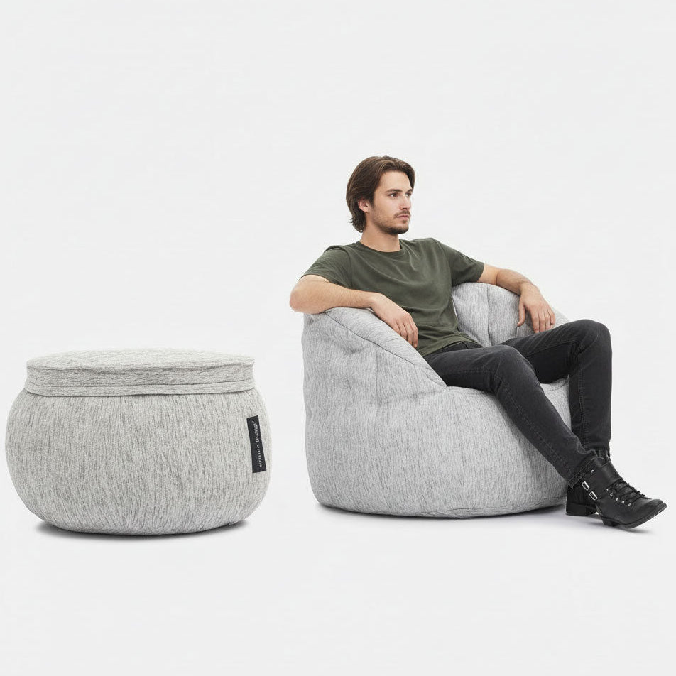Lykilatriðið í einstaka Wing Ottoman er fjarlægjanlegt Memory Foam púði. Það er hrein hamingja að sökkva sér niður í þennan stól sem gefur þér möguleika á að slaka á heima. Memory Foam tæknin gerir það að verkum að saccosekkurinn man líkamsform þitt og hvaða stöður þú kýst best – þannig að stóllinn býður þig alltaf velkominn!
